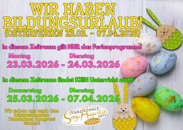wir machen Betriebsurlaub in den Osterferienvom Montag, 23.03.2026 bis Dienstag, 07.04.2026!